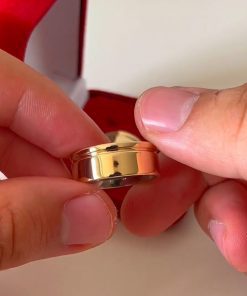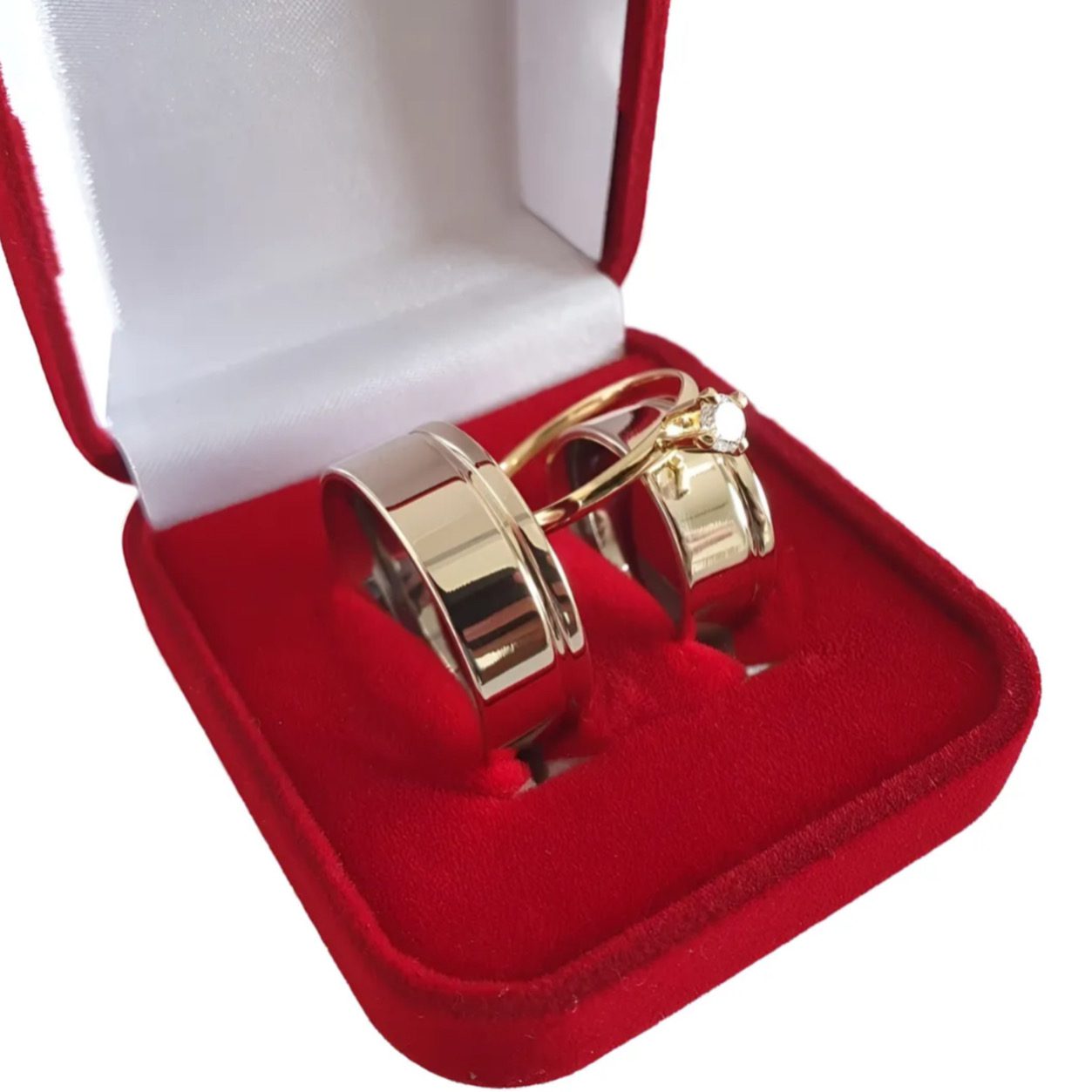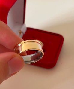 É uma aliança com estrutura interna em aço cirúrgico, recoberta por uma chapa de ouro 10k fixada com tecnologia avançada. Essa técnica garante aparência luxuosa, maior resistência e excelente durabilidade.