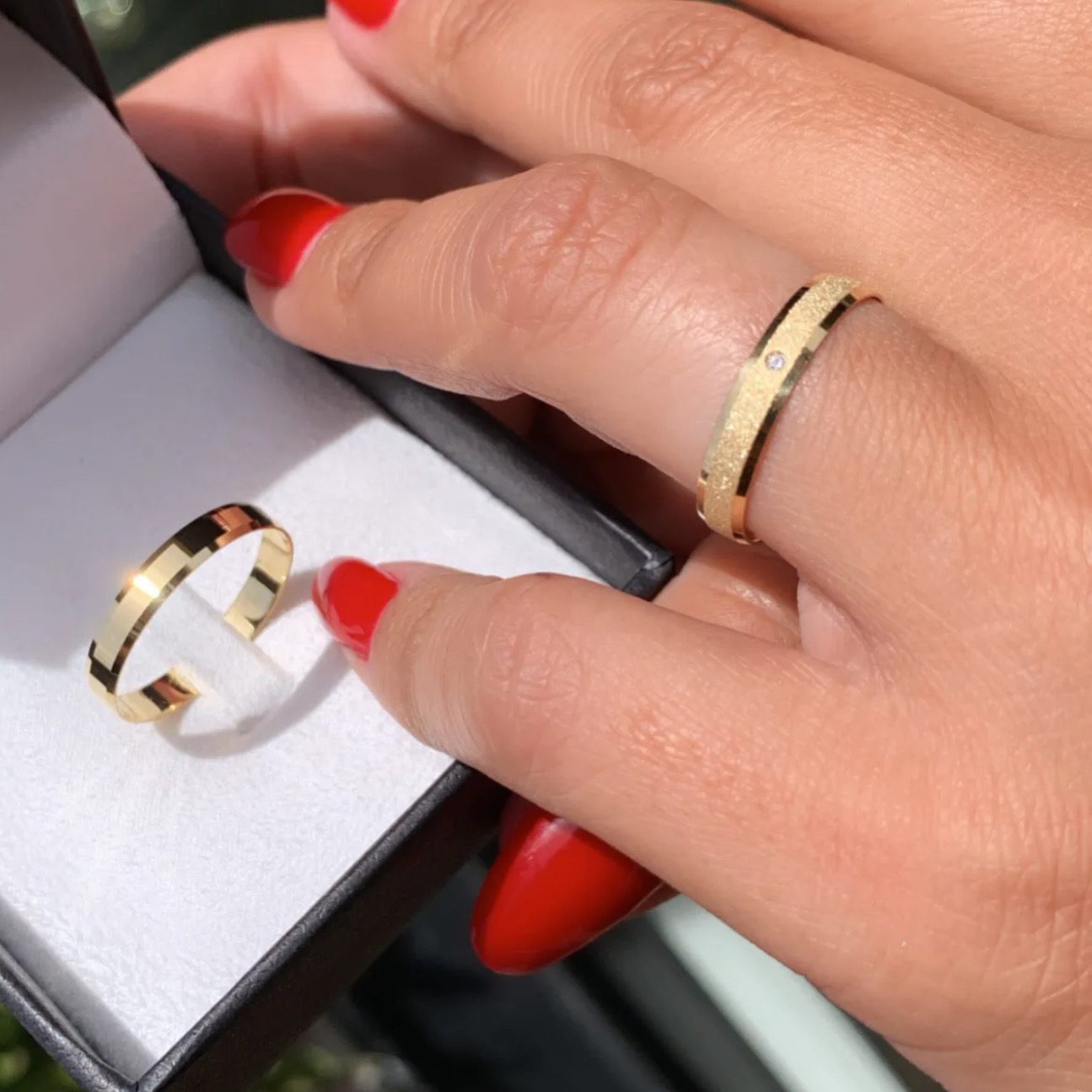 Ideal para quem procura alianças de casamento em ouro 18K com design moderno e refinado.