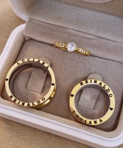 • Oferecemos a opção de gravação no par de alianças. No entanto, pedimos que verifique atentamente os tamanhos antes de solicitar a gravação, pois, em caso de troca devido ao tamanho, a gravação impede a devolução ou troca do produto.