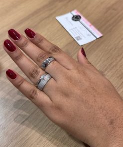 Alianças de Namoro em Aço Cirúrgico | Par de Alianças Prata 6mm | Feminina Diamantada e Masculina Lisa Semi Anatômica