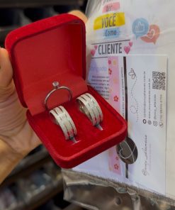 • Par de alianças em aço cirúrgico 8mm diamantado com 2 frisos.