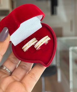 • Detalhe Especial: Pedra de zircônia em formato de coração (na aliança feminina)