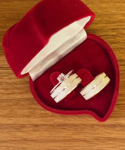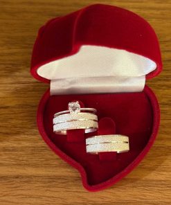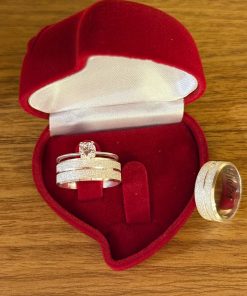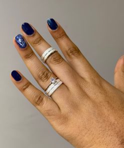 Alianças de Namoro em Prata 950 | 7mm Chanfrado com 2 Frisos Diamantados | Modelo Anatômico | Anel Solitário Incluso