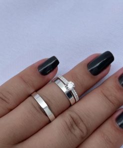 As Alianças de Namoro em Prata 950 com 4mm de largura oferecem um visual clássico e atemporal. O acabamento liso e polido transmite elegância e leveza, enquanto o formato semi anatômico garante conforto para o uso diário.
