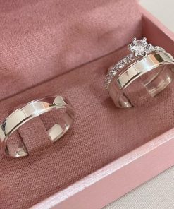 O formato semi anatômico garante conforto ideal para o uso diário. Para complementar o conjunto, há a opção de incluir um anel solitário opcional cravejado com pedra de zircônia, agregando ainda mais sofisticação e brilho ao modelo.