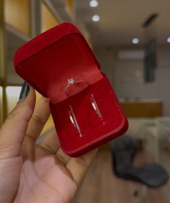 O conjunto pode ser complementado com um anel solitário opcional, cravejado com pedra de zircônia, trazendo brilho e um toque especial ao presente.