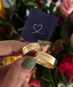 Aliança de Ouro 18K | Modelo Reto Semi-Anatômico 6mm | Liso com 1 Friso Lateral | Casamento e Noivado