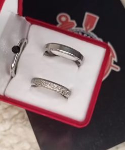Par de alianças prata em aço cirúrgico 4mm; Anel Pedra Preta Opcional – Ideal para namoro, noivado e compromisso.