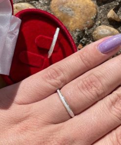 Alianças de Namoro Finas 2mm em Prata 950 | Modelo Milena | Chanfrado Diamantado – Semi Anatômico Anel Solitário Incluso
