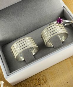 As Alianças Grossas de Namoro Modelo Diamantado, em Prata 950, apresentam um design imponente com 10mm de largura e 5 frisos cuidadosamente trabalhados. O acabamento semi anatômico proporciona um ajuste confortável para o uso diário. Para complementar, há a opção de adicionar um anel solitário cor rosa, que pode ser a escolha perfeita para quem deseja algo mais especial.