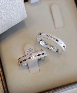 Alianças de Namoro 3mm em Prata 950 | Modelo Sabrina | Semi Anatômica com Friso Central Largo