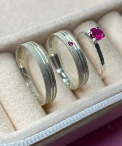Simbolize seu amor com sofisticação e brilho com as Alianças de Namoro em Prata 950. Com 4mm de largura, esse modelo apresenta um acabamento totalmente diamantado, combinado com dois frisos laterais que garantem um design moderno e elegante. A versão feminina se destaca com uma pedra de zircônia na cor rosa, adicionando delicadeza e requinte à peça. Para um toque ainda mais especial, oferecemos um anel opcional na cor rosa, ideal para complementar o conjunto com charme e exclusividade.