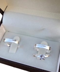 As Alianças de Namoro Lívia em Prata 950 apresentam um design sofisticado com acabamento semi anatômico de 3mm de largura, garantindo conforto durante o uso diário. O modelo feminino possui 1 pedra de zircônia delicadamente posicionada dentro do friso lateral, trazendo um toque de brilho e elegância. O modelo masculino segue o mesmo design, mas sem a pedra, mantendo a simplicidade e o estilo refinado. O anel solitário opcional permite a personalização, com a possibilidade de adicionar uma pedra de zircônia.