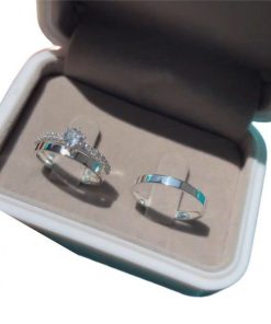 • Feminino com Pedra Lilás: Pedra de zircônia cravejada, proporcionando sofisticação.