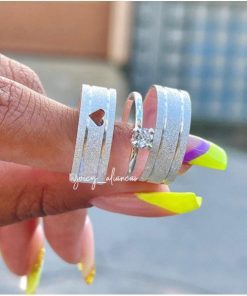 O modelo feminino se destaca pelo coração vazado no centro, um detalhe delicado que simboliza o amor e a conexão do casal. Já o modelo masculino segue o mesmo acabamento diamantado com dois frisos laterais, garantindo harmonia no conjunto. Além disso, esse conjunto acompanha um anel solitário incluso, cravejado com pedra de zircônia, trazendo ainda mais sofisticação.