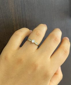 Seu design é composto por micro zircônias cravejadas que refletem a luz com intensidade, tornando-o perfeito para usar sozinho ou acompanhado de alianças e outros anéis.