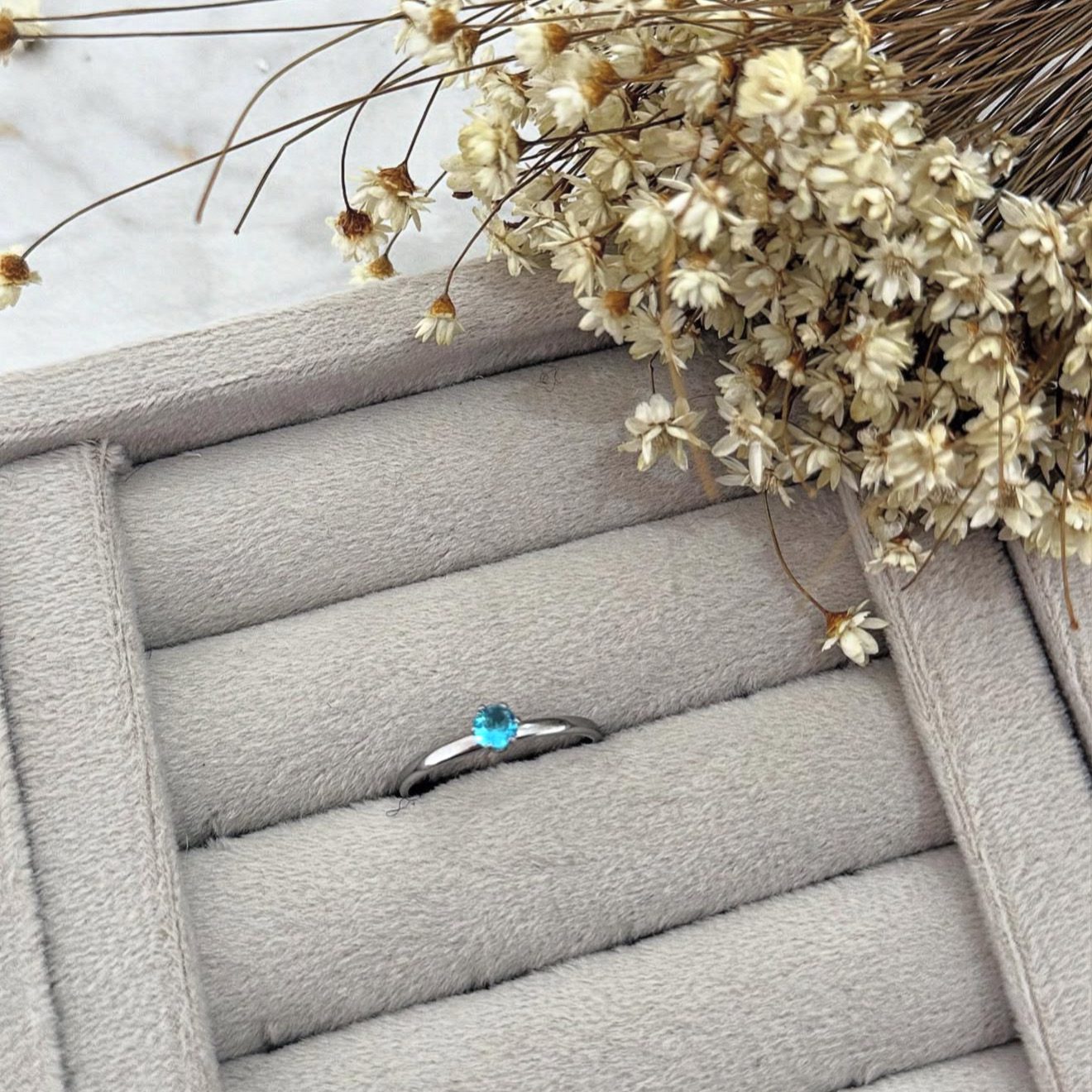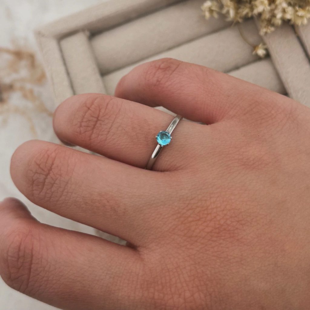 Anel Feminino 2mm Diamante zircônia de Aço cirúrgico Azul