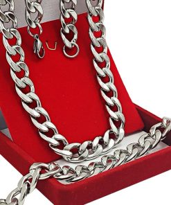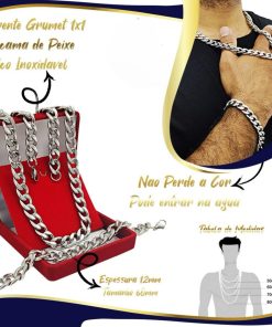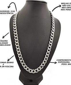 Corrente Cordão Masculino Aço Cirúrgico Maciço 12mm + Pulseira