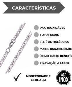 Corrente Cordão Masculino Bizantino Aço Inox Cirúrgico