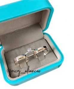 As Alianças de Namoro Modelo Nataly, em Prata 950, combinam sofisticação e elegância em um design exclusivo. Com 6mm de largura, esse modelo apresenta um friso lateral com um delicado filete banhado a ouro 18K, proporcionando um contraste luxuoso e diferenciado. O modelo masculino e feminino seguem o mesmo design refinado, e há a opção de incluir um anel solitário com pedra de zircônia, tornando o conjunto ainda mais especial.