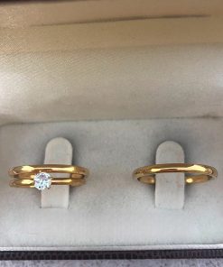 ● Par de Alianças em aço cirúrgico banhado a ouro 18k