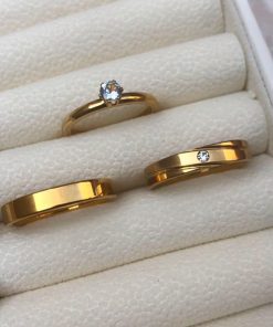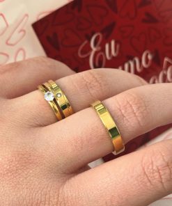 • 1 Par de alianças em aço cirúrgico banhado a ouro 18K