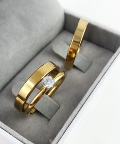 ● Par de Alianças em aço cirúrgico banhado a ouro 18k