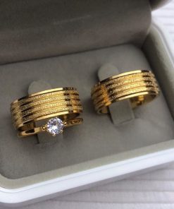 • 1 Par de alianças em aço cirúrgico banhado a ouro 18K