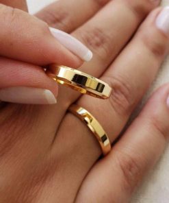 Alianças de casamento | Par de alianças em moeda antiga 4mm chanfrado – Banho de ouro 18k