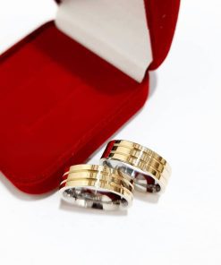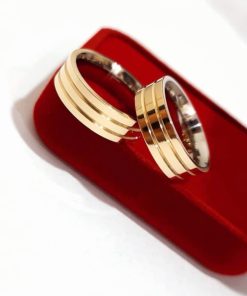 Estas alianças de casamento trazem um design moderno e sofisticado, com 6mm de largura e 2 frisos laterais, aplicados de canto a canto. O acabamento semi anatômico oferece um ajuste confortável, ideal para o uso diário, sem abrir mão do estilo. Feitas em moedas antigas, as alianças possuem resistência e brilho, sendo banhadas a ouro 18k para garantir durabilidade e elegância. Como opcional, o revestimento de aço cirúrgico pode ser adicionado para uma maior resistência ao desgaste.