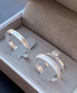 O modelo feminino se destaca pelo acabamento diamantado com 1 friso lateral, adicionando um toque sofisticado e refinado à peça. O modelo masculino mantém a estética elegante, com um design liso polido e 1 friso lateral, garantindo harmonia e sofisticação ao conjunto.