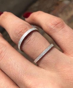 Alianças de Namoro Finas 2mm em Prata 950 | Modelo Diamantado Reto | Semi Anatômico – Anel Solitário Opcional
