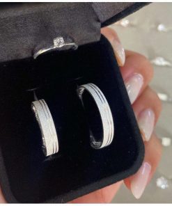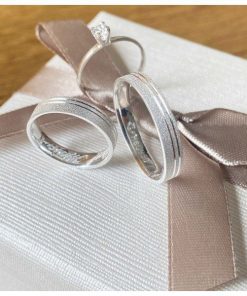 Alianças de Namoro em Prata 950 | 5mm Diamantado com 2 Frisos Laterais | Modelo Elle | Anel Solitário Opcional