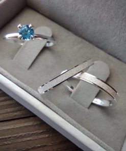 As Alianças de Namoro Modelo Melissa, em Prata 950, possuem 4mm de largura e apresentam um design sofisticado e delicado. O acabamento diamantado realça o brilho da peça, enquanto o formato semi anatômico proporciona conforto para o uso diário. Essa joia é ideal para casais que buscam elegância e sofisticação em um modelo fino e moderno. Para complementar o conjunto, há a opção de incluir um anel solitário cravejado com pedra azul, agregando ainda mais exclusividade ao visual.