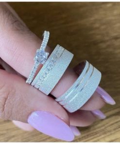 A aliança feminina se destaca com 15 pedras de zircônia cuidadosamente cravadas na lateral da peça, formando um efeito de meia volta, que adiciona ainda mais delicadeza e sofisticação ao modelo. Já a aliança masculina mantém o mesmo acabamento diamantado com 2 frisos laterais, garantindo um visual clássico e sofisticado.