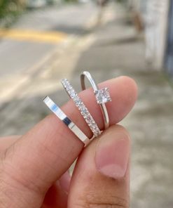Alianças de Namoro 2,5mm em Prata 950 | Modelo Vivian | Finas com Pedras Cravejadas | Semi Anatômico com Anel Solitário Incluso