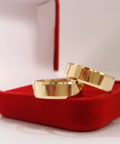 Elegância e sofisticação definem o modelo chanfrado de 6mm, um dos favoritos entre nossos clientes. Seu acabamento impecável realça o brilho do banho de ouro 18k, proporcionando um visual luxuoso e atemporal. Confeccionadas em moeda antiga, essas alianças garantem resistência e durabilidade, tornando-se a escolha ideal para simbolizar momentos especiais. Para um conjunto ainda mais completo, há a opção de adicionar um anel complementar.