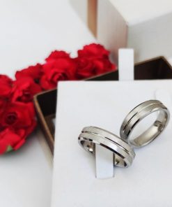 Par De Alianças Prata Em Aço Cirúrgico 6mm Prata Fosco Lixado Chanfrado