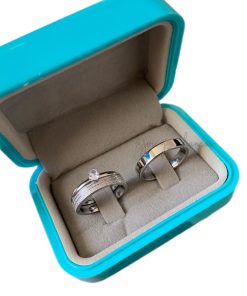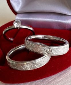 Par De Alianças Prata Em Aço Cirúrgico 8mm Diamantado Feminino / Masculino Fosco Com Batimentos