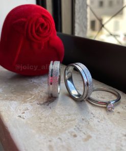 Trio de alianças prata em aço cirúrgico 6mm Friso reto diamantado- MOD 24 – Ideal para namoro, noivado e compromisso.